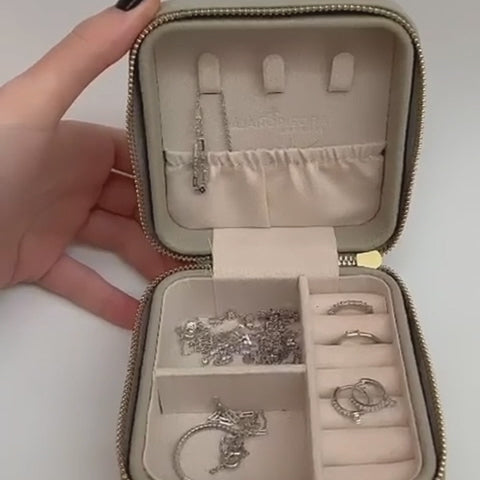 Perfecto para guardar tu joyería y llevarla de viaje! Con espacio para anillos, aretes, pulseras y collares.